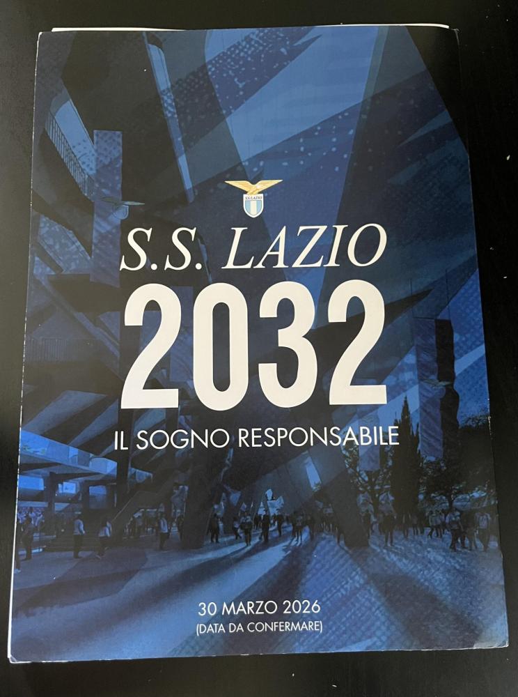 Cancellare il cerchio rosso sul calendario. La data del 30 marzo non è stata confermata. Così c'era scritto sulla cartella stampa (in foto), consegnata dalla Lazio lo scorso 17 febbraio 2026 in occasione della presentazione del progetto per lo Stadio Flaminio. Era previsto un appuntamento per illustrare il futuro della società, il "sogno responsabile" chiamato "Lazio 2032": un vero e proprio piano di rilancio del club. A spiegarlo era stato il presidente Lotito a Formello: "Durante la prossima sosta della Nazionale presenteremo 'Lazio 2032 - Il Sogno Responsabile'. una conferenza programmatica che delineerà il percorso strategico del Club. In quell'occasione illustreremo, insieme alla società di consulenza Deloitte e all'Università Luiss, un piano industriale a cinque anni fondato su sostenibilità economica, crescita patrimoniale e competitività sortiva", c'era scritto nel suo discorso.
