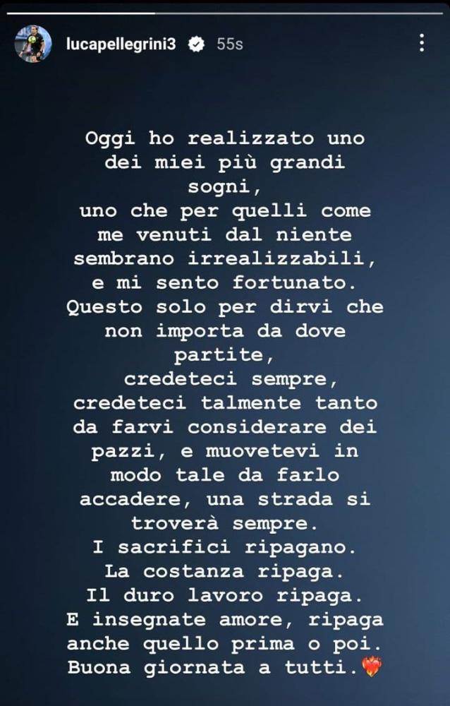 AGGIORNAMENTO ORE 14 - Nulla a che vedere con il mercato. L'idea di riportare il giocatore a Formello esiste ed è forte, ma la lettera di Pellegrini non è legato al calcio. Secondo quanto raccolto dalla nostra redazione, la storia Instagram sarebbe legata a una cosa personale della vita extracampo del terzino.