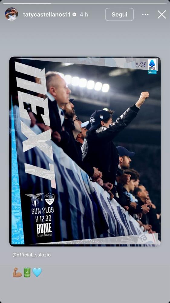 Valentìn Castellanos si prepara in vista del derby. L'attaccante argentino, che nel secondo tempo della partita contro il Sassuolo ha lasciato il campo per un problema agli adduttori, ha ricondiviso sul proprio profilo Instagram il post della Lazio in vista del derby, aggiungendo anche tre emoticon che lasciano ben sperare i tifosi biancocelesti: un muscolo, una batteria che si ricarica e un cuore celeste. Emoticon che fanno ben sperare in vista della stracittadina di domenica contro la Roma.