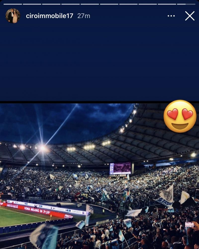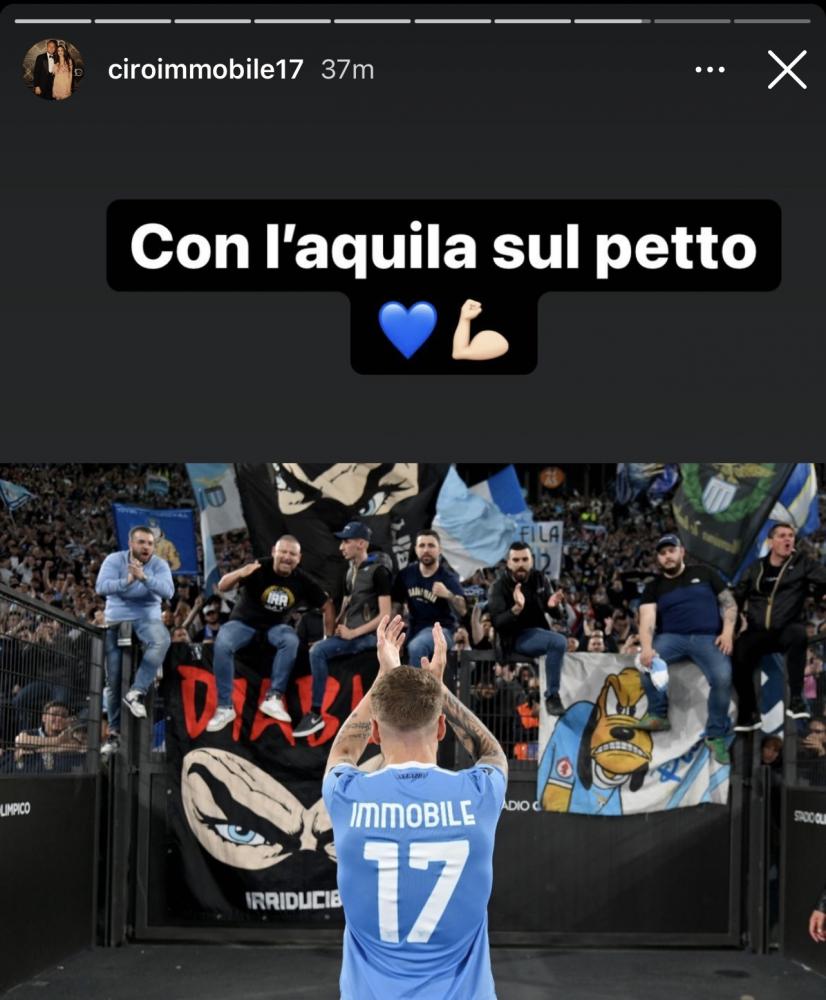 LAZIO SOCIAL - La Lazio batte la Sampdoria e si avvicina al traguardo di un piazzamento europeo. il 2-0 ai blucerchiati fa salire le aquile a 62 e molto dipenderà anche dai risultati di Roma, Fiorentina e Atalanta con le prime due che si affronteranno lunedì sera. Non è finito nel tabellino dei marcatori, ma Ciro Immobile ha trascinato i suoi con una prestazione di livello nonostante qualche problema fisico. Il bomber, da vero capitano, ha fatto i complimenti alla squadra e questa mattina ha condiviso una serie di storie su Instagram. Una foto dell'esultanza di gruppo con il messaggio "Che spettacolo" per elogiare i compagni. I tifosi che ieri hanno risposto presente, poi, hanno meritato un doppio ringraziamento. Prima la foto sotto la Nord e poi la foto dalla Tevere con l'emoticon con gli occhi a cuore. Ciro è sempre più leader della squadra di Sarri e vuole trascinare sempre più in alto le aquile.
