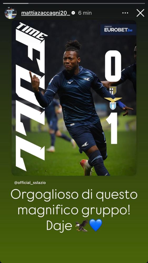 Il capitano biancoceleste, attraverso una storia pubblicata su Instagram, ha commentato il successo dei suoi compagni.