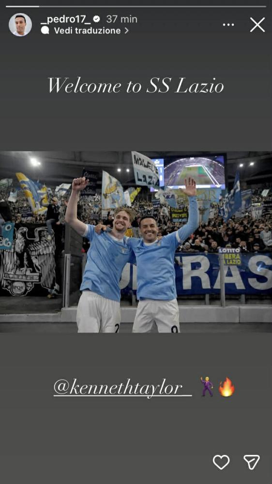 Pedro Rodriguez, ormai un veterano a Roma, lo ha incoronato e gli ha "presentato l'ambiente". "Benvenuto alla S.S. Lazio", questo il messaggio social dello spagnolo a corredo di una foto che li ritrae in un clima di festa sotto la Curva Nord.