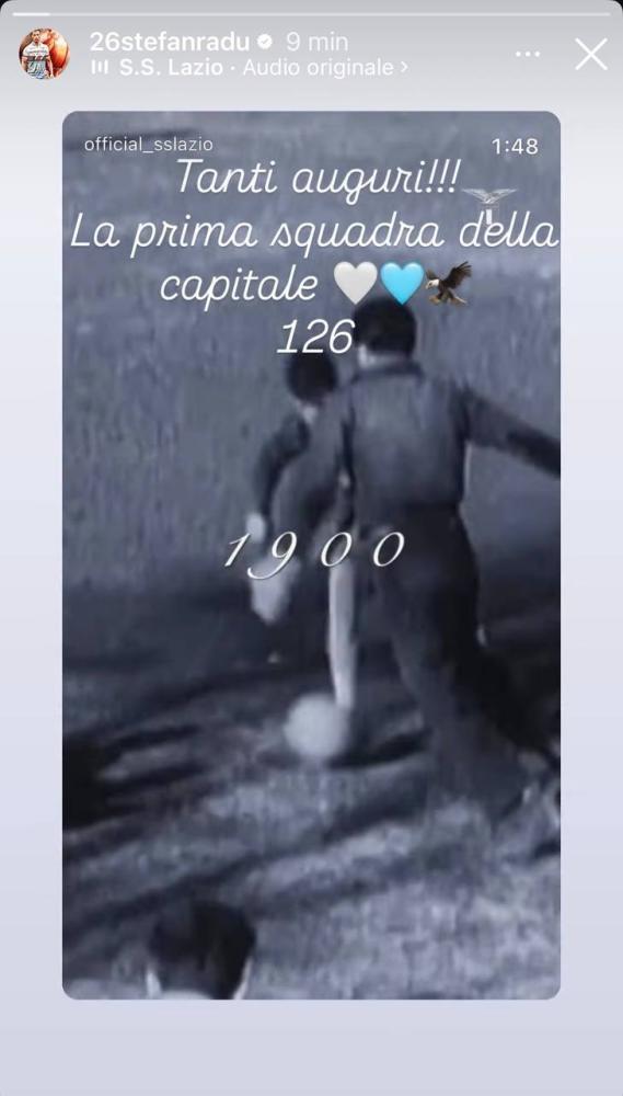 E oggi, in occasione dei 126 anni di storia del club biancoceleste, non poteva mancare il suo messaggio. Ricondividendo lo splendido video pubblicato sui canali ufficiali del club, Radu ha fatto gli auguri alla Lazio, per poi aggiungere una breve ma significativa frase, incisa da sempre nel cuore e nella testa di ogni tifoso. "La prima squadra della Capitale", ed è il vanto più grande.