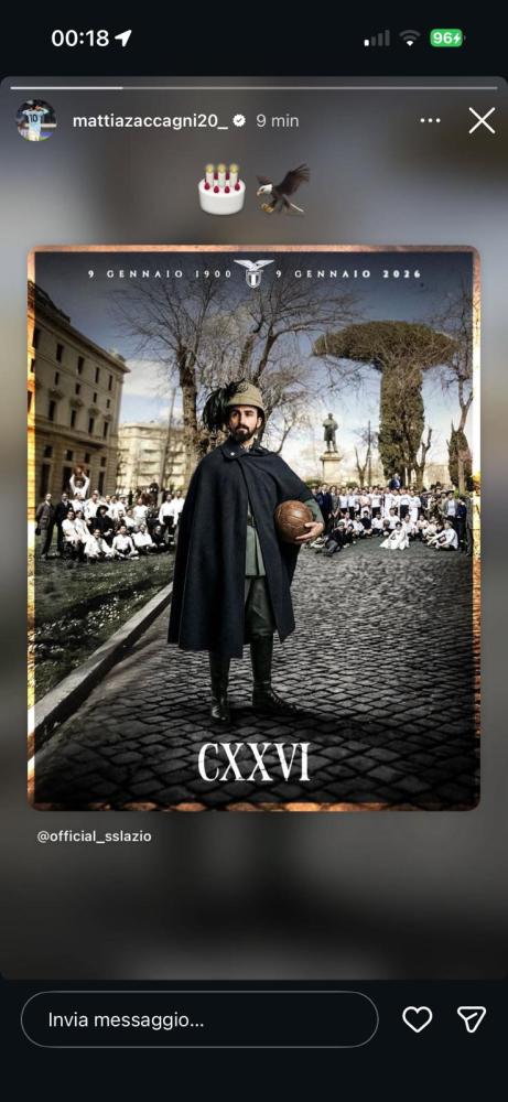 È da poco scoccata la mezzanotte, la Lazio ha compiuto 126 anni. Via social, tra i biancocelesti, i primi a fare gli auguri al club sono stati Mattia Zaccagni e Nicolò Rovella.