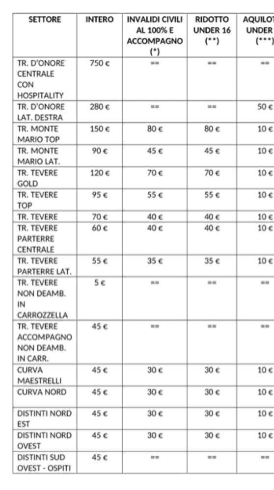 Come comunicato in campagna abbonamenti, i ragazzi in possesso dell`abbonamento Aquilotto under 14 di tutto lo stadio, non hanno diritto a questa gara; avranno la possibilità di confermare il proprio posto acquistando un biglietto al costo di 10 € nel seguente periodo: