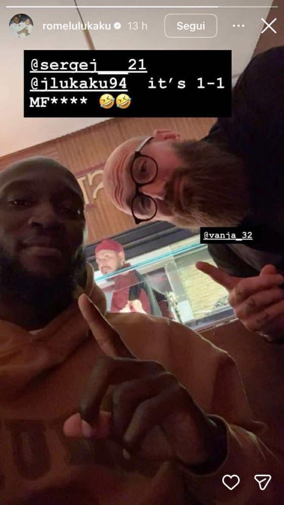 Grazie al successo per 2-0 sul Bologna, il Napoli ha chiuso il 2025 alzando al cielo la Supercoppa Italiana. In seguito a questo trionfo, il centravanti azzurro Romelu Lukaku ha postato sulle proprie storie Instagram una foto insieme a Vanja Milinkovic-Savic, entrambi immortalati intenti a fare il gesto "1-1, taggando i rispettivi fratelli Sergej e Jordan.